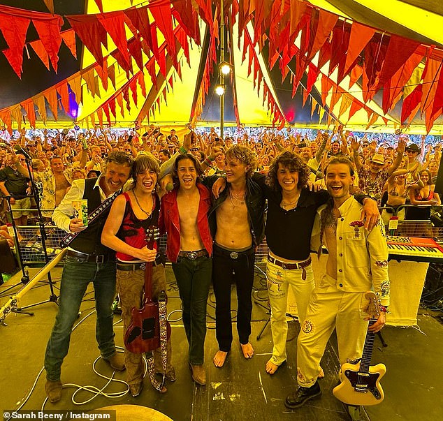 She also mentioned that a few years ago, the boys entered a competition to play at Glastonbury and won it. This experience made them realize the potential they had. When they finally performed at Glastonbury, it was an incredible moment. They even required extra security due to the large crowd. Sarah described herself as a "big sort of fan girl" at the back, giving it "Kris Jenner."